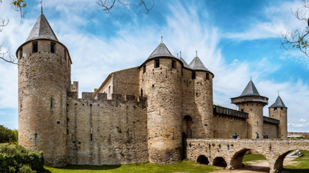 Carcassonne Fortress is a remarkably preserved medieval fortified city in southern France, known for its double-walled ramparts and fairy-tale turrets. Situated on a hill overlooking the Aude River.