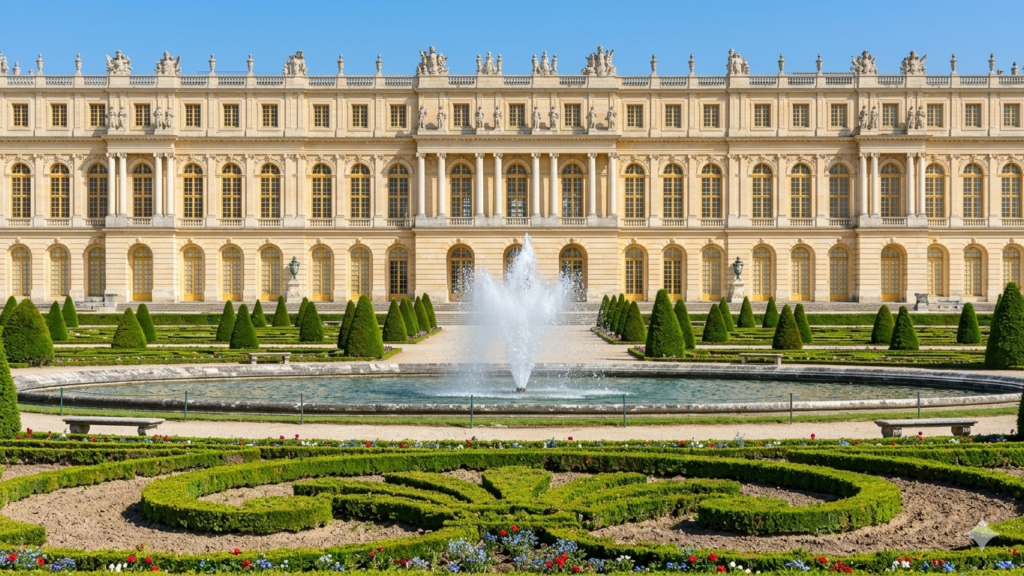 The Palace of Versailles is a monument located in Versailles about 16 km southwest of Paris. It was principal residence of French monarchs XIV, XV, and XVI. it is a masterpiece of 17th- and 18th-century architecture.
