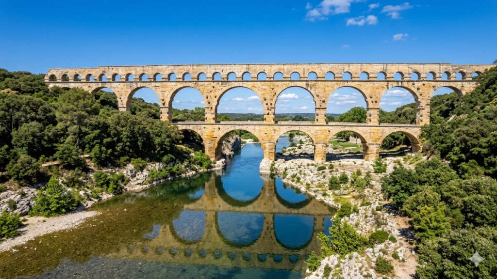 The Pont du Gard is a monumental Roman bridge spanning the Gardon River in southern France. Built in the 1st century AD, it is the tallest and best-preserved bridge of ancient world.