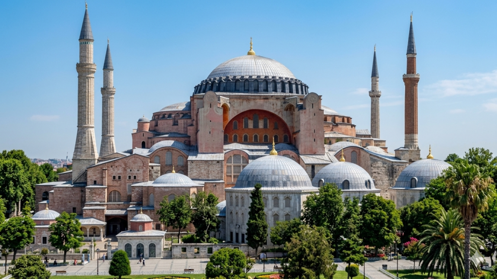 Hagia Sophia is a historic architectural masterpiece in Istanbul. Originally built as a Byzantine basilica, it later became an imperial mosque, a museum, and once again functions as a mosque today. It remains one of the most iconic monuments of both Christian and Islamic heritage.